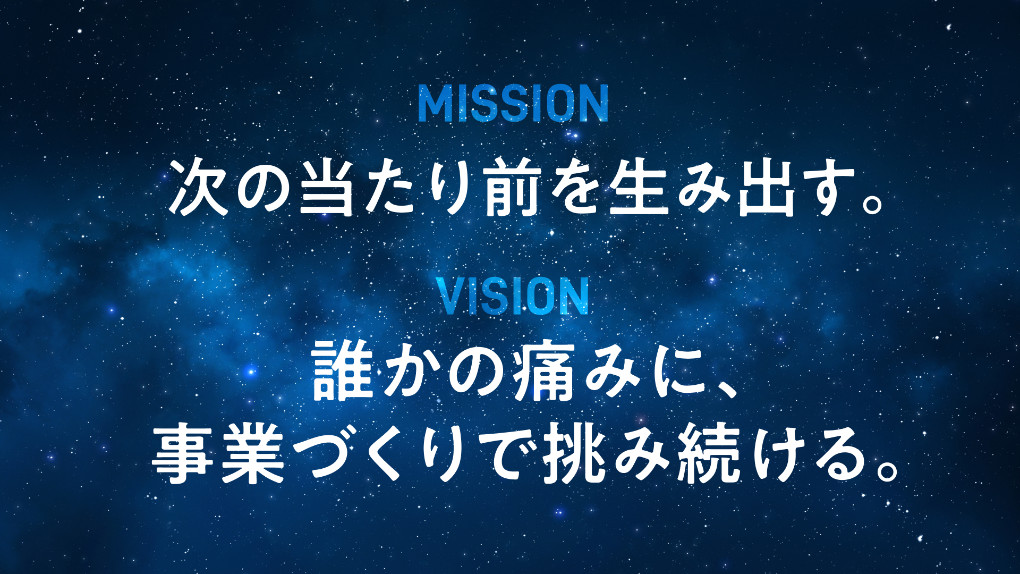 2025年、先述のバリューに加え、ミッション・ビジョンも刷新した。その際、事業創りの軸を、 「インパクト」──10億円を最低ラインにDMMの次の柱を担える規模を狙うこと、と、「本質」──「誰かの痛み」に向き合い真に価値のあるものを届けること、の2つに定めている。そうした挑戦の積み重ねが、「次の当たり前」を社会に生み出す原動力になっていく。