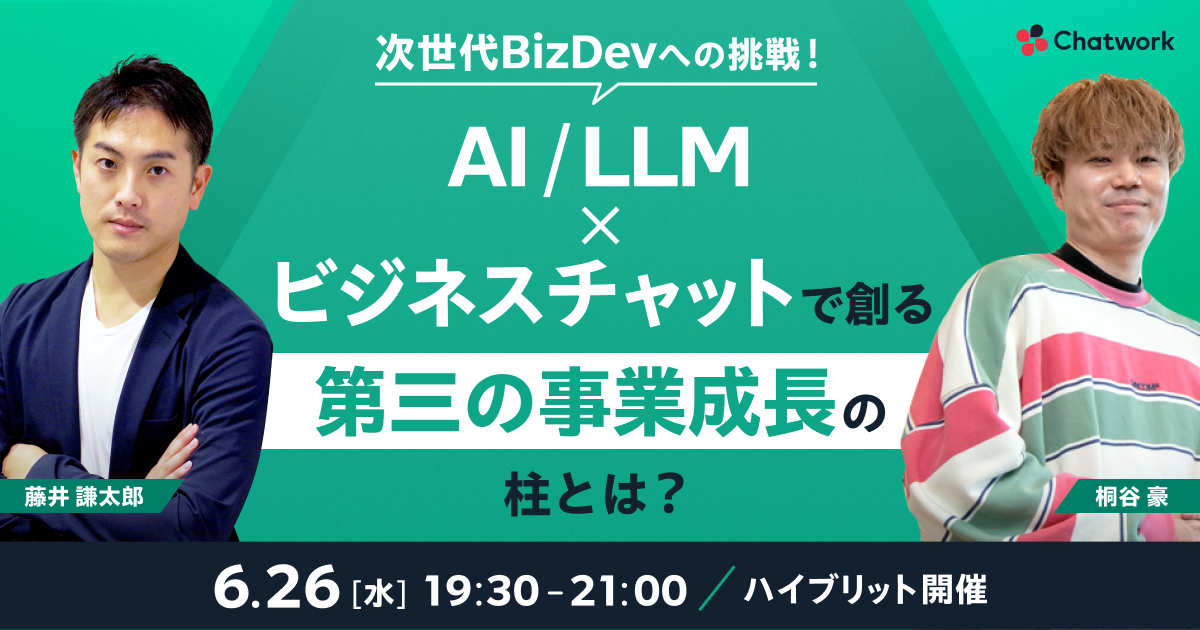 【Chatwork桐谷氏登壇のBizDev向けイベントをご案内】AI/LLM × ビジネスチャットで創る第三の事業成長の柱とは?