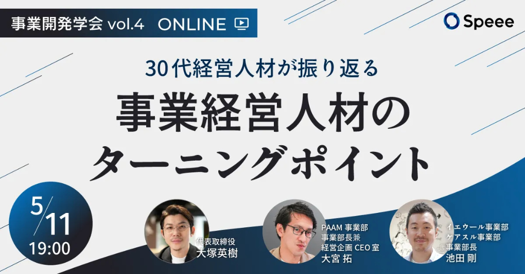 大塚そうですよね。Speeeでも、例えば外部企業とアライアンスを組むとか、事業のスタート当時とは全く異なるデザインをして事業を引き上げられるようになった人材がいます。