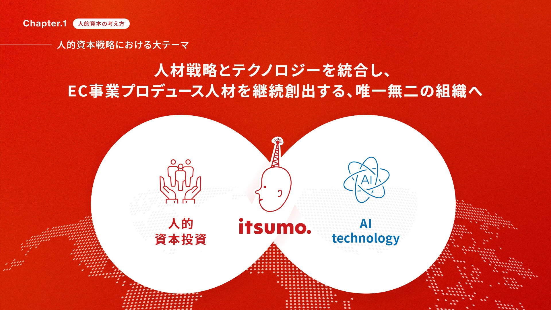 同社の人的資本経営とは、単なる人事制度や採用の謳い文句ではない。「AIを武器に新たな事業を創り出す人材」を輩出するため、会社の事業基盤・データ・組織カルチャーのすべてが連動し、個人の成長がクライアントの業績向上へと直結する会社全体のエコシステムを指している。
