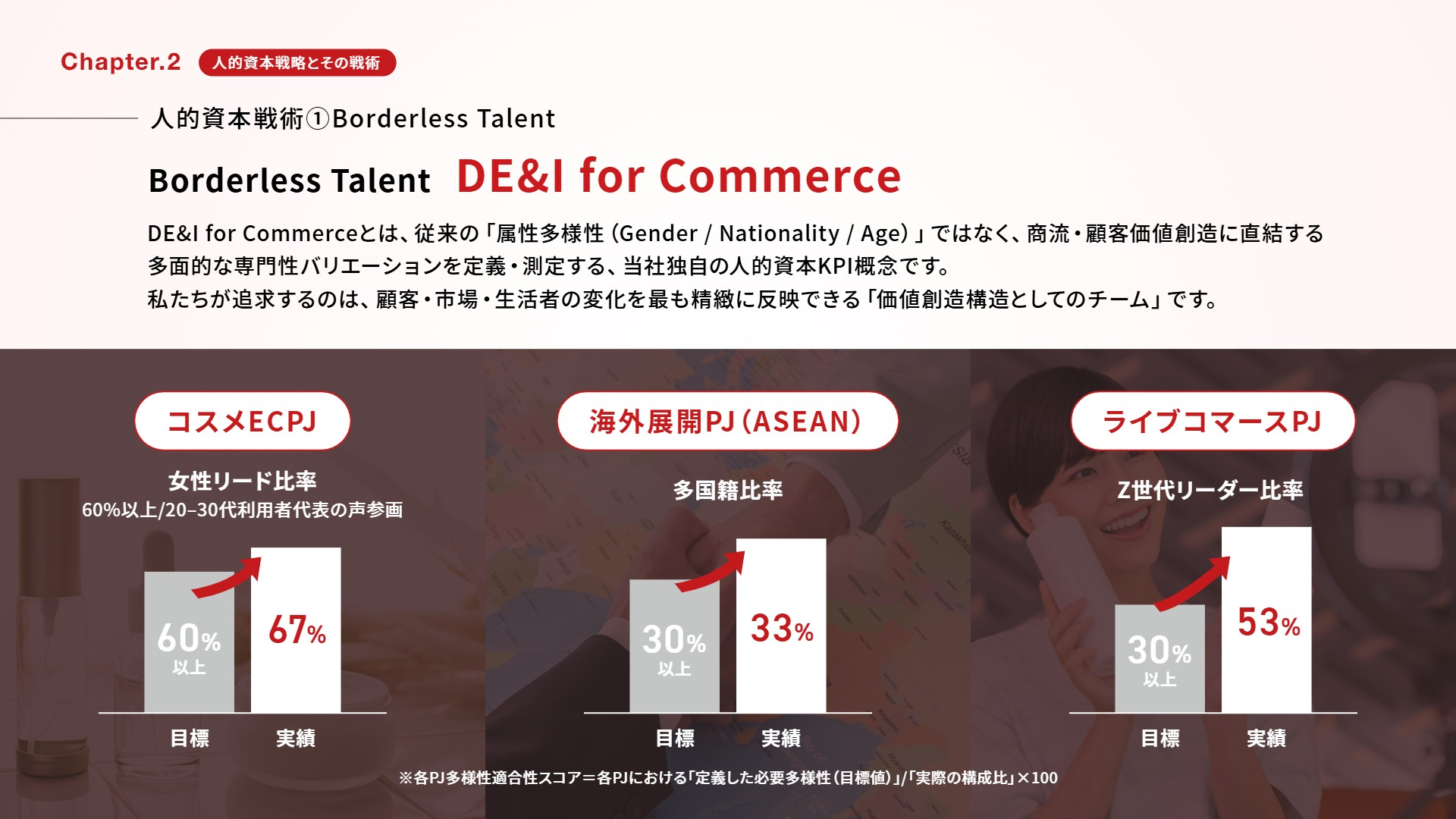「コスメ領域のプロジェクトは女性のリード比率が67%(目標60%)」