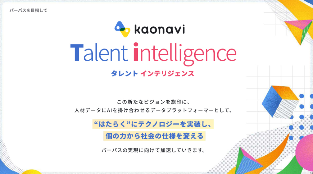 これは、データとAIの力で「人的資本(Talent)」に「知性(intelligence)」をもたらし、個の力を最大化するという宣言だ。創業期からの「現場を活性化させる」という思想に基づき、「Talent=個」の可能性を拓くという意志が込められている。