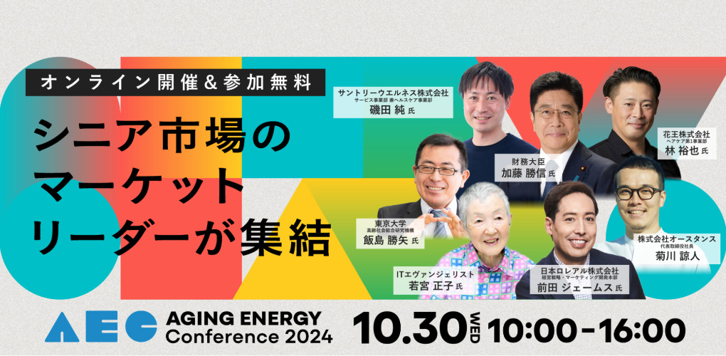 シニア市場への取り組みは、全世代に向けたビジネス成功の鍵といっても過言ではない。今、この波に乗らなければ、大きなチャンスを逃すことになるだろう。「Aging Energy Conference2024」は、そんな次世代ビジネスの扉を開く、貴重な機会となるはずだ。