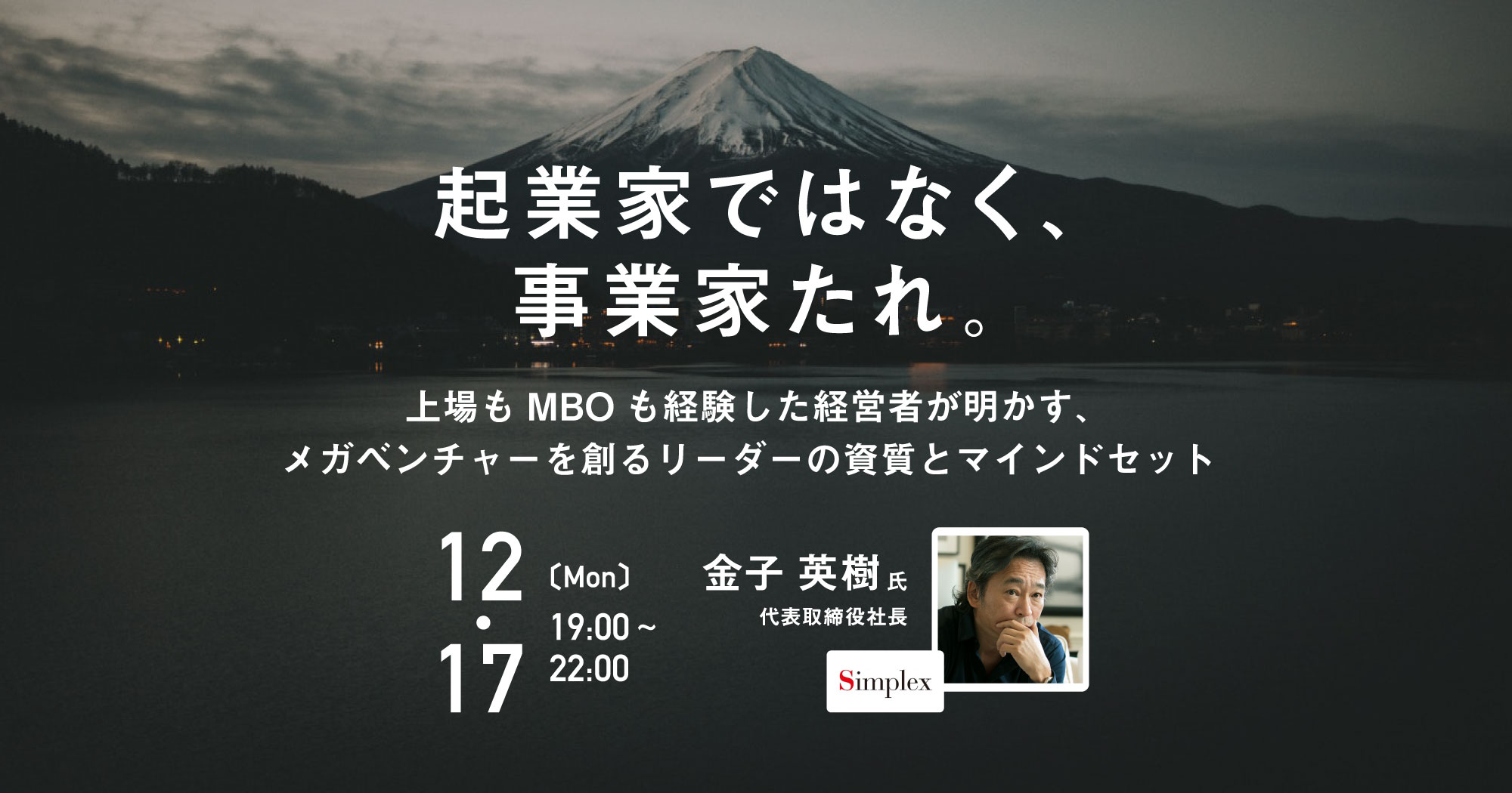 12/17(月)開催。金子流「メガベンチャーを作るリーダーの資質」を大公開