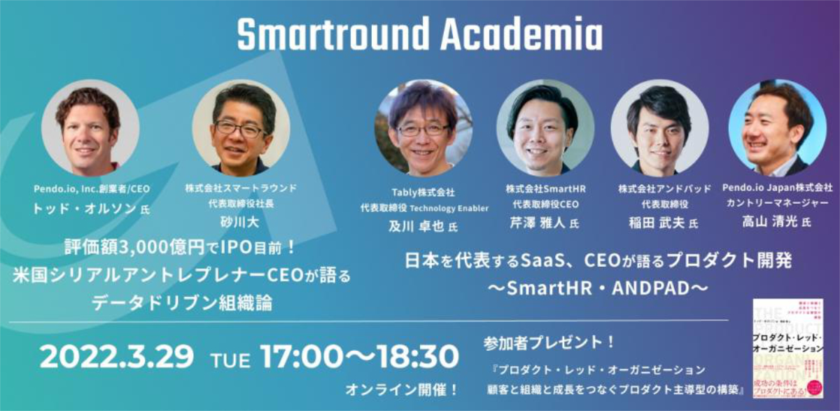 【3/29開催】評価額3,000億円でIPO目前!米国シリアルアントレプレナーCEOが語るデータドリブン組織論/日本を代表するSaaS、CEOが語るプロダクト開発〜SmartHR・ANDPAD〜