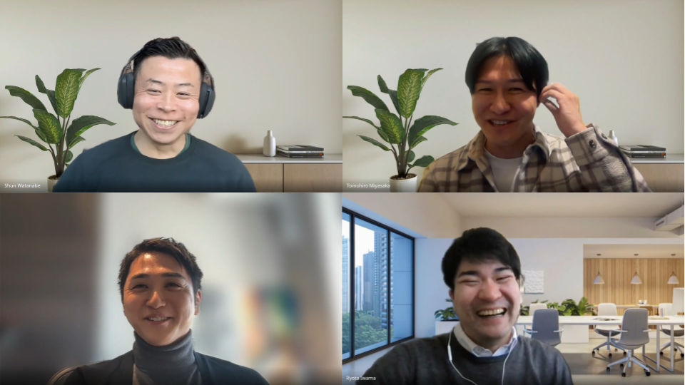 ご取材時の様子(左上から時計回りに、渡邉氏・宮坂氏・岩間氏・山口氏