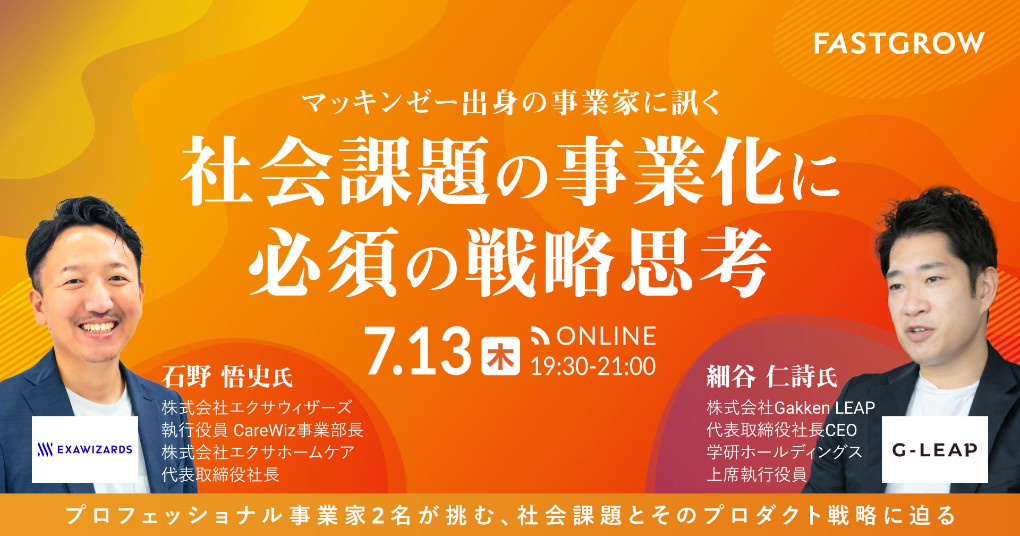 【イベント情報】「社会変革論」を、Gakken LEAP代表細谷氏が、エクサウィザーズ石野氏と共に語ります